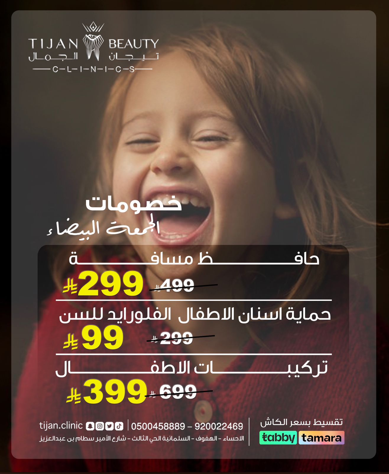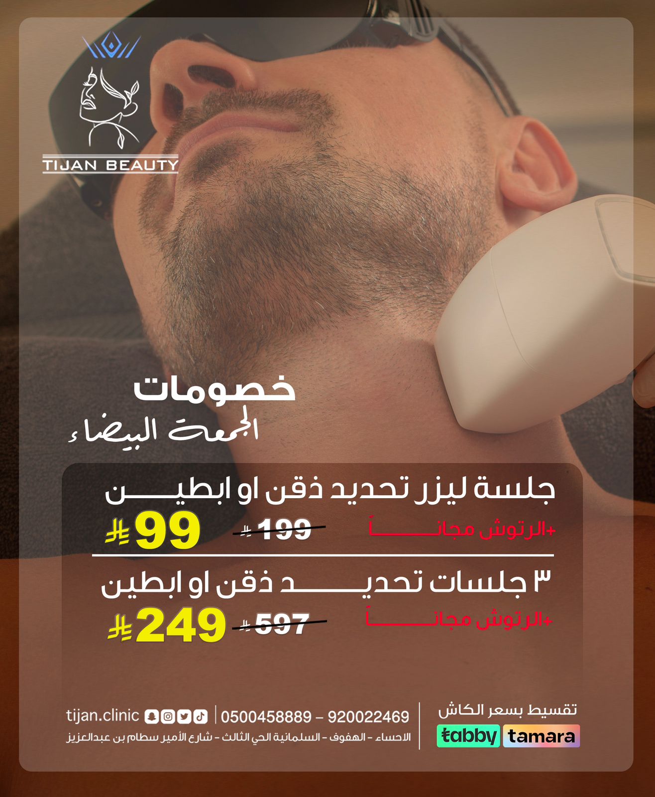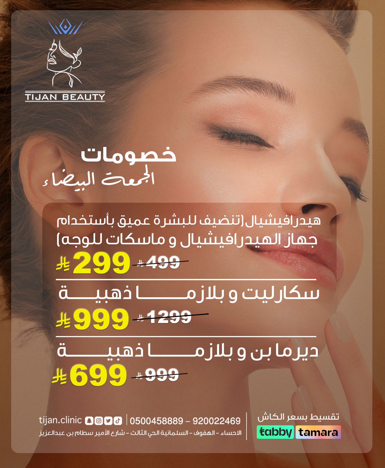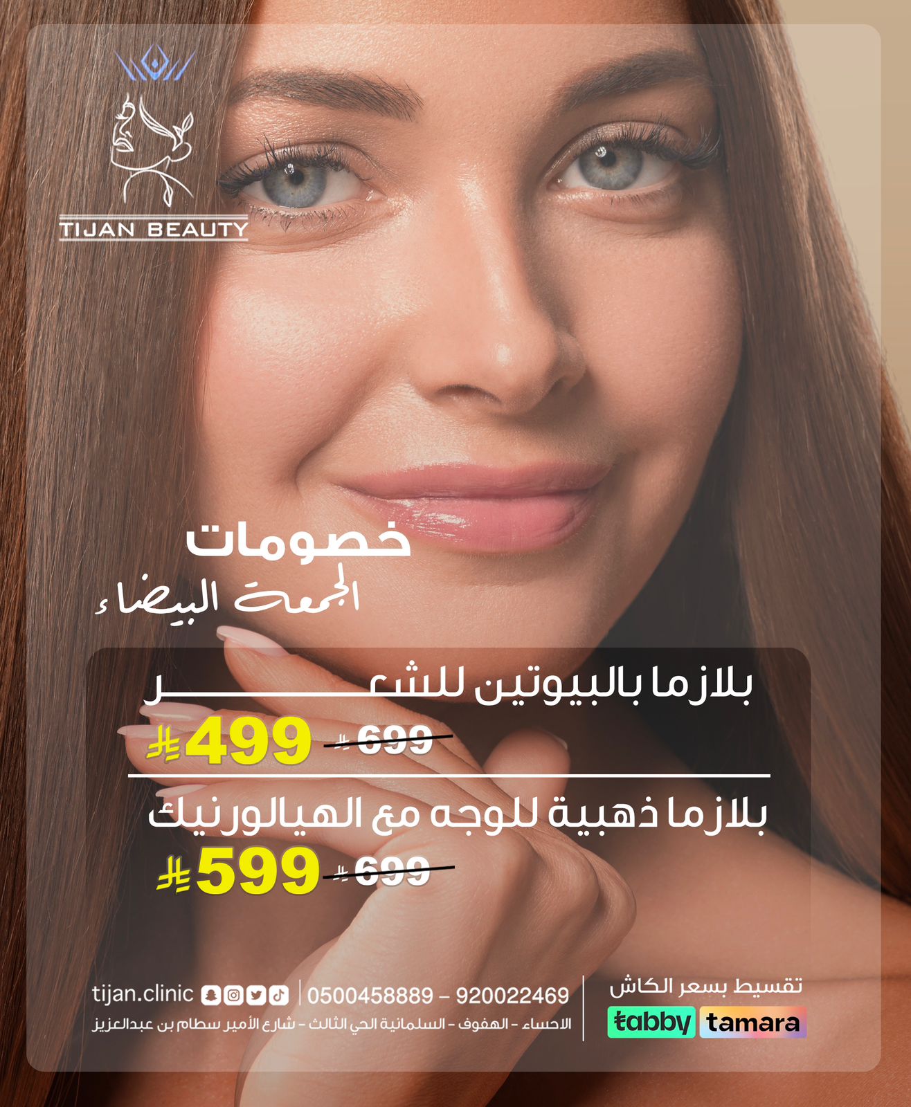 تحتاج إلى خدمة طبية ؟ أتصل على : 500458889 (966+) ساعات العمل نستقبلكم من 9:00 صباحا إلى 10:00 مساء احجز موعدك الان من نحن مركز تيجان الجمال متخصص لطب الأسنان والجلدية والليزر والتجميل تيجان الجمال رائدة في خدمات التجميل الشاملة: تجميل الأسنان، العناية بالبشرة، وعلاجات جلدية متطورة اقراء المزيد لا تنتظر ابدأ رحلتك اليوم واختر خطة الدفع المناسبة لك اتصل بنا اليوم لتحديد موعد استشارتك! اتصل الان جمالك مضمون مع عروض تيجان الجمال لا تنتظر ابدأ رحلتك اليوم واختر خطة الدفع المناسبة لك احجز العرض الان خدماتنا لسنا مجرد عيادة.. نحن شركاء رحلة جمالك الدائمة مهما كانت احتياجاتك التجميلية: ابتسامة هوليود، علاج اللثة، أو ترميم الأسنان، ستجد الخطة المثالية هنا خدمات الجلدية وتجميل البشرة نضرة بإشراقة الشباب.. تجميلٌ بتقنيات عالية ودقة طبية فائقة قراءة المزيد... خدمات تجميل الأسنان ابتسامتك عنوان ثقتك.. تجميل الأسنان بتقنيات حديثة لجمالٍ مشع ودائم. قراءة المزيد... قبل & بعد Our custom veneers effectively address imperfections like chips and discoloration, giving you a radiant, confident smile. اتصل بنا اليوم لتحديد موعد استشارتك! اتصل الان تواصل معنا احصل على استشارة مهنية مجانية شارع الأمير سطام بن عبد العزيز, حي السلمانية الثالث,الهفوف,الأحساء 500458889 (966+) info@tijan-clinic.com نستقبلكم من:9:00 صباحا الى 10:00 مساء احجز موعدك الان